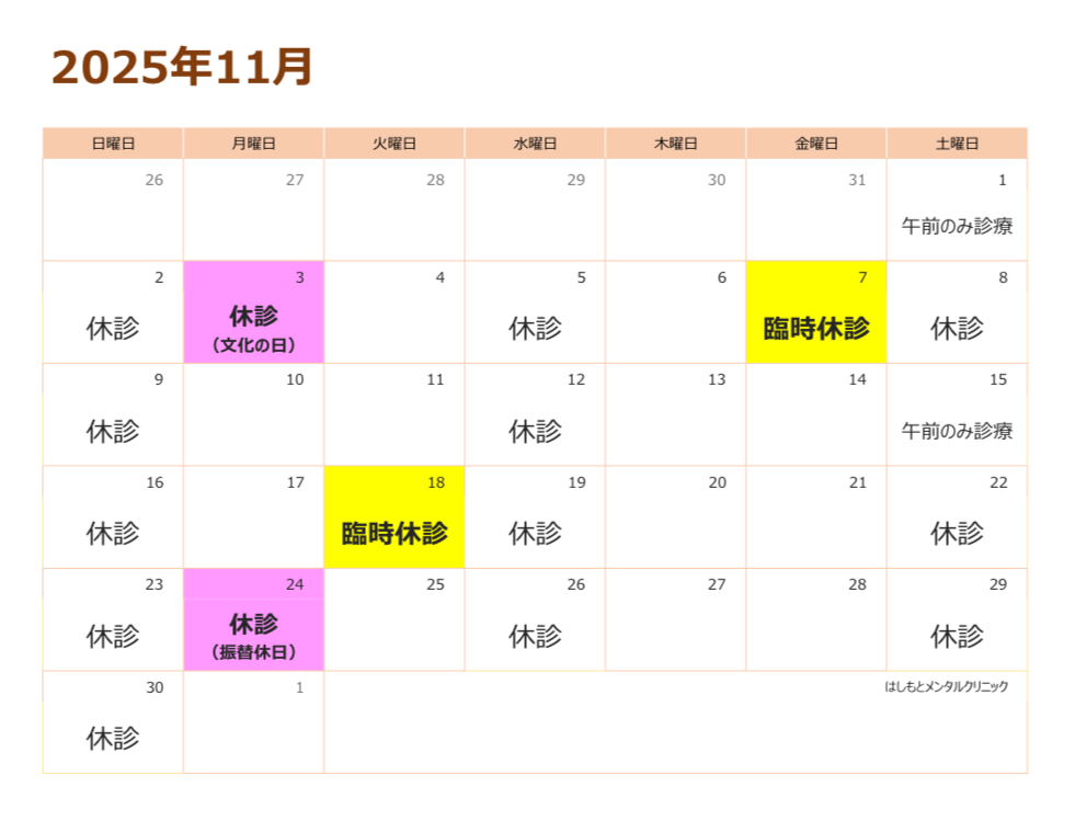 11月休診のお知らせです。